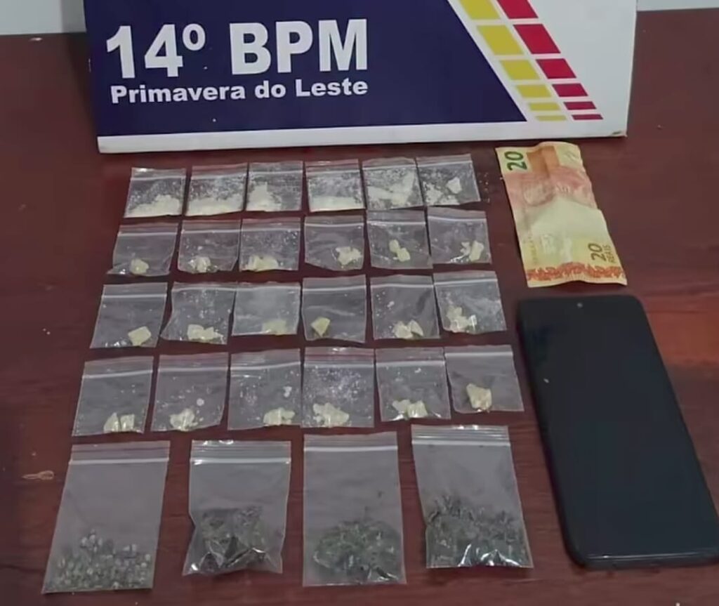 A Polícia Militar recebeu uma denúncia de tráfico de drogas e, por volta das 00h40 desta quinta-feira (5), realizou uma ação em um ponto já conhecido pelas autoridades no bairro São José, em Primavera do Leste. Assim que chegaram ao local, os policiais identificaram movimentação suspeita e iniciaram a abordagem. Nesse momento, um dos indivíduos tentou fugir, porém os militares agiram rapidamente e conseguiram contê-lo com uso moderado da força. Em seguida, a guarnição realizou a revista pessoal e encontrou diversas porções de entorpecentes, o que reforçou a suspeita de comercialização de drogas no endereço denunciado.