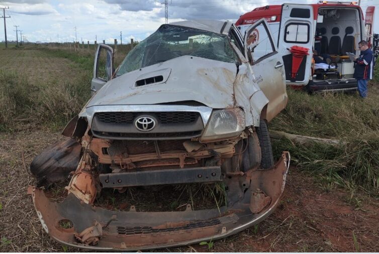 O motorista conduzia uma caminhonete Toyota Hilux quando ocorreu o capotamento.